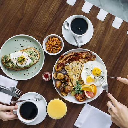 The Andaz Ottawa Byward Market, By Hyatt features a daily cooked-to-order breakfast. Guests can try breakfast, usually served at one of the on-site restaurants, for example at Feast Revel. Offering city views, an à la carte restaurant is located onsite. Drinks are available at the lobby bar. There is also a dessert restaurant with different Canadian dishes in the area.