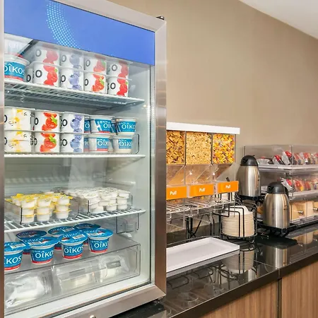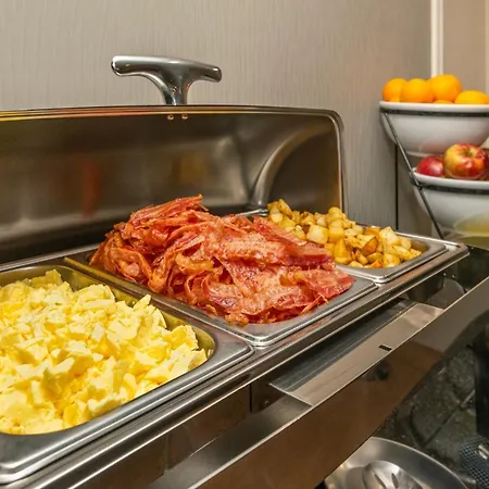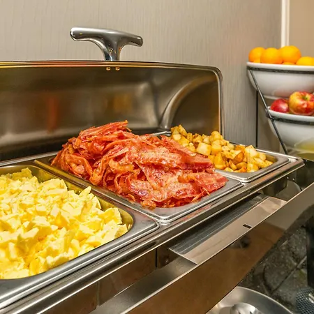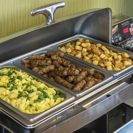 Comfort Inn West offers a hot cold buffet breakfast with eggs and bacon.
